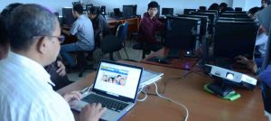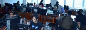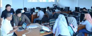 Pontianak, Wedunews. e-Learning Kuliah Semakin Asyik. Tagline ini menggambarkan suasana latihan daring (online exercise) e-learning Diploma III di laboratorium komputer FISIP Untan pada Sabtu (11/6). Kegiatan ini berlangsung maraton sejak pukul 08.00-16.00, terbagi dalam tiga sesi untuk tiga tim masing-masing 20 pembelajar. Materi mencakup teknik pengembangan koleksi digital, drag dan drop file dari Desktop ke Moodle System, Created wordpres, categories, menu, widget, posting, dan share link web assignment di sistem Moodle.